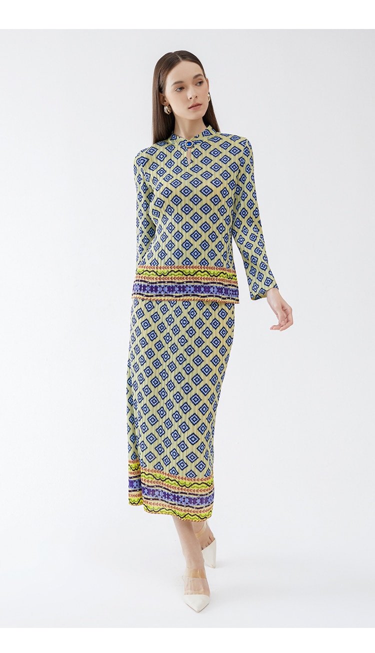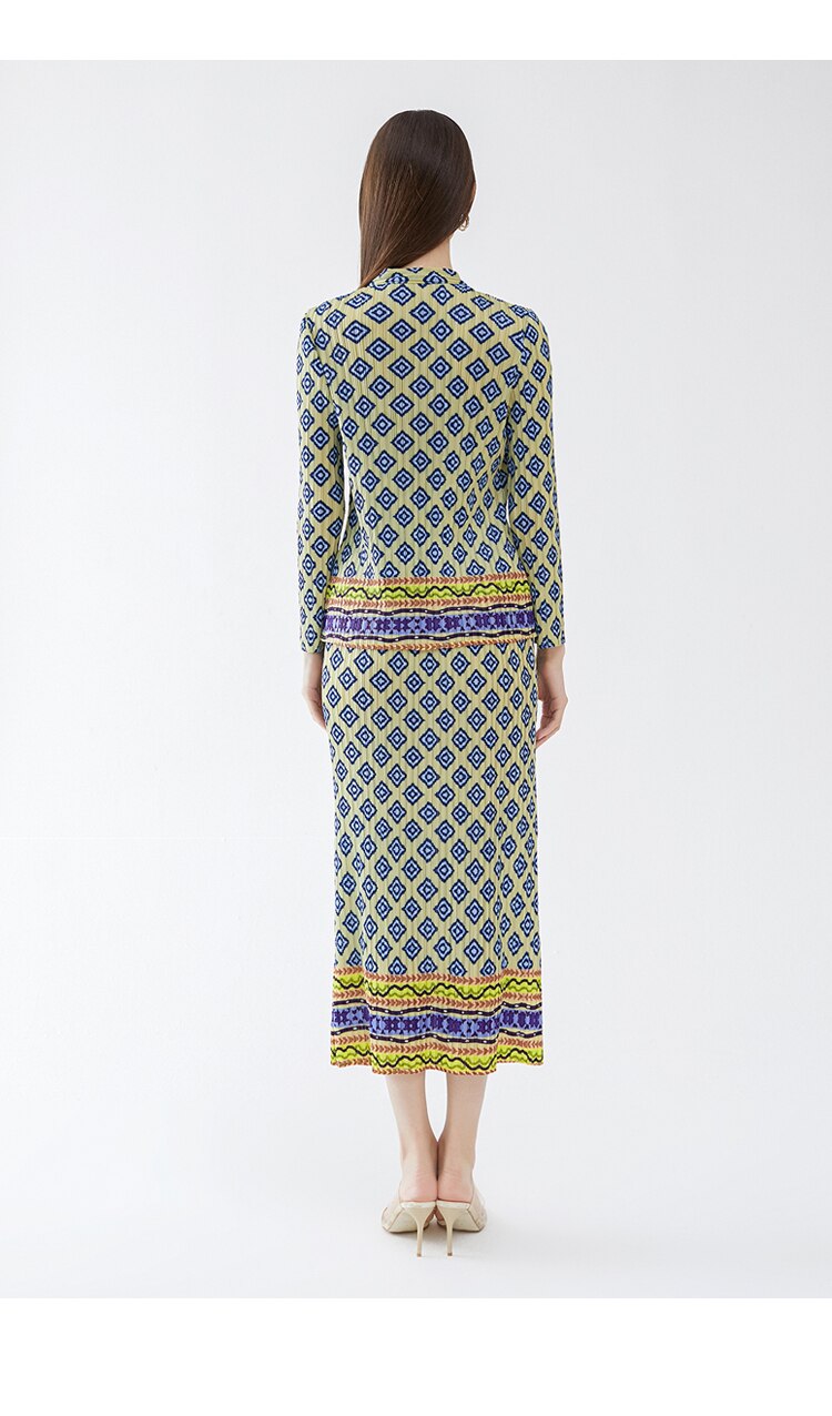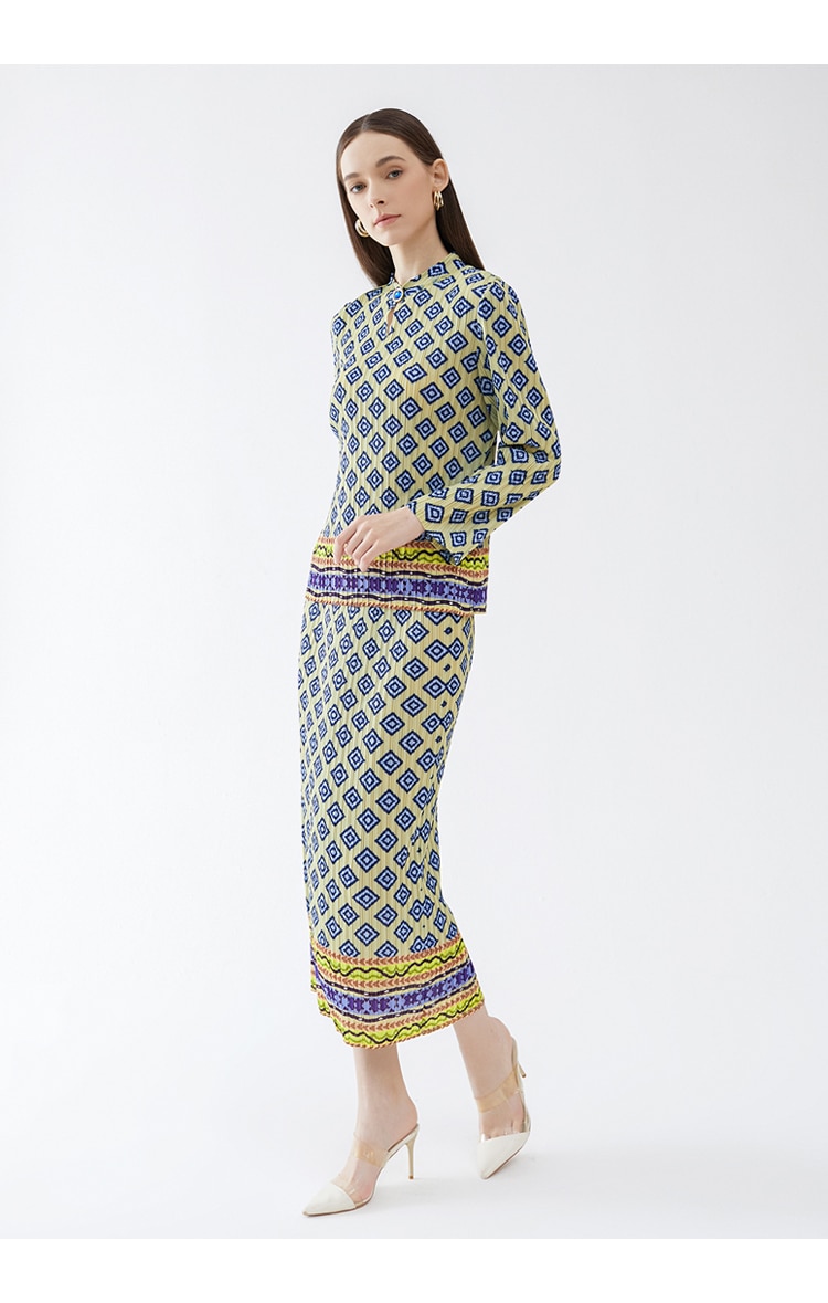 2025 Gender Fluid - Pleated Vintage Printed Straight Skirt Sets