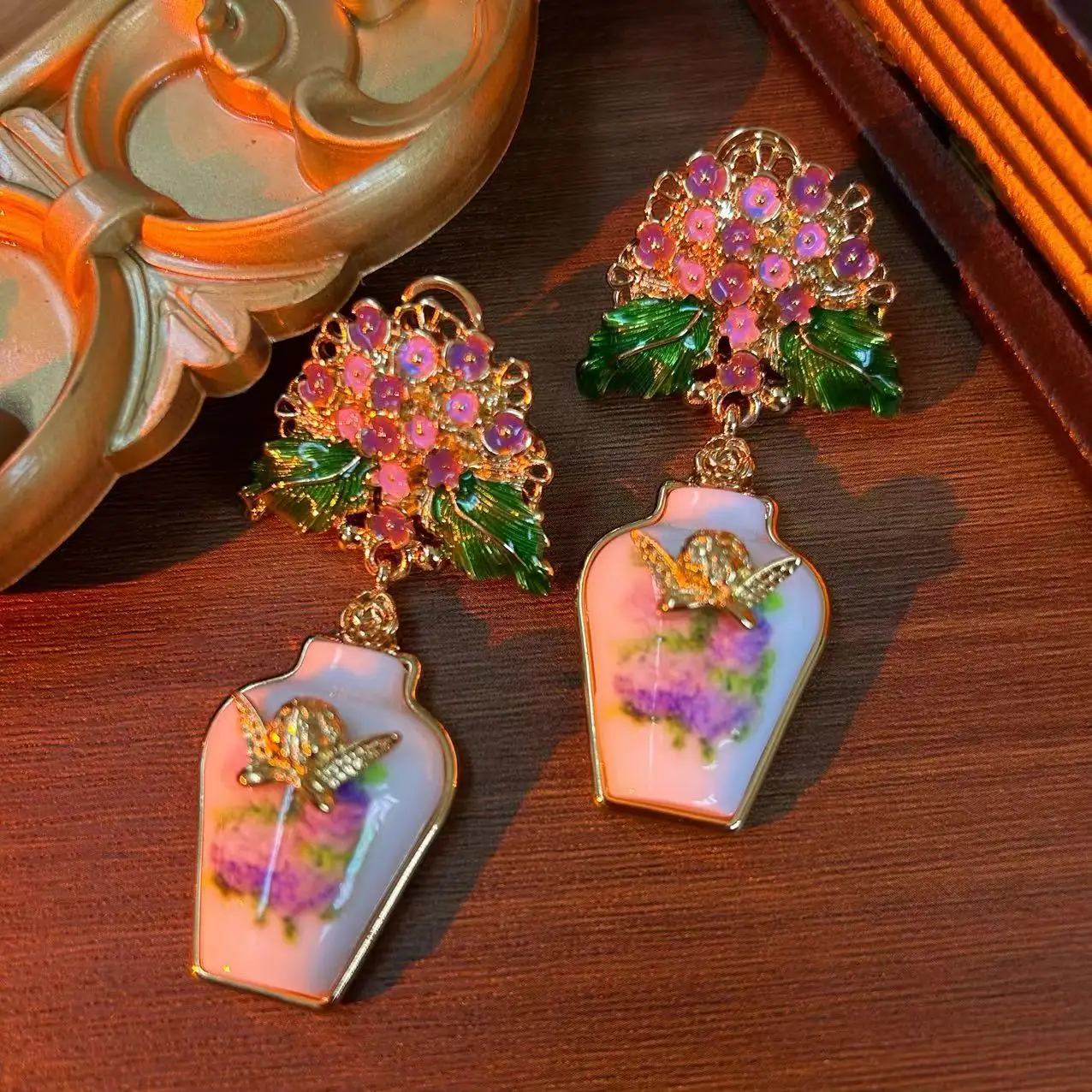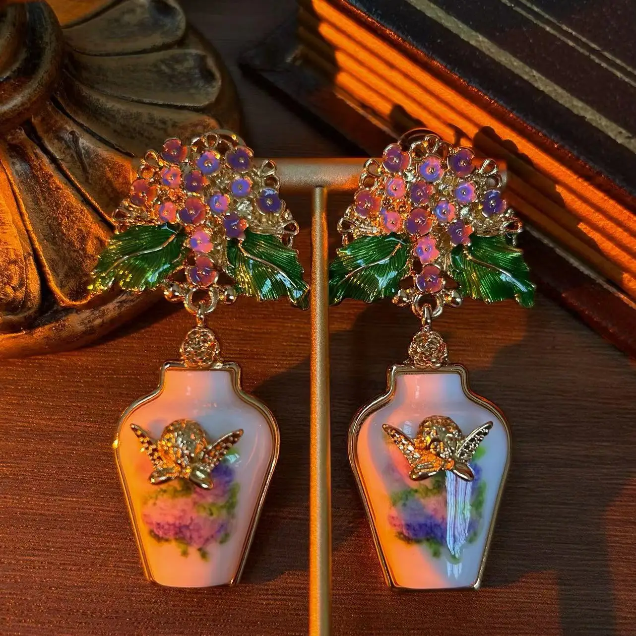 A bouquet of flowers cute sleeping angel vase vintage vintage antique palace enamel flower earrings