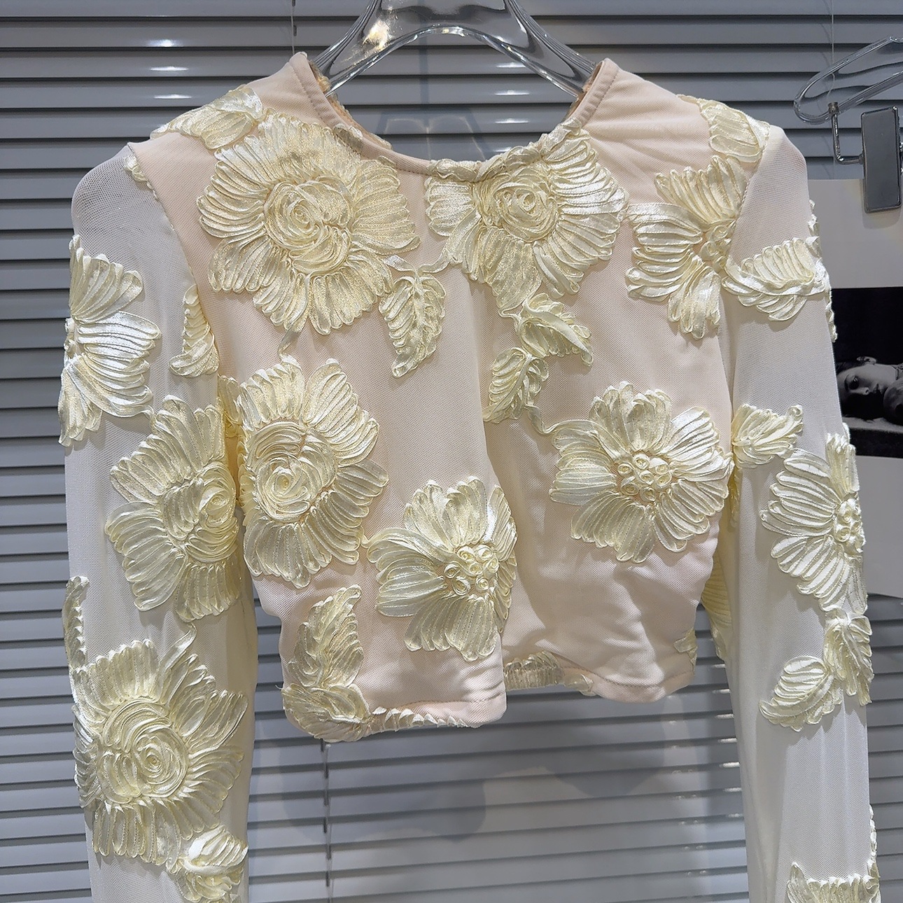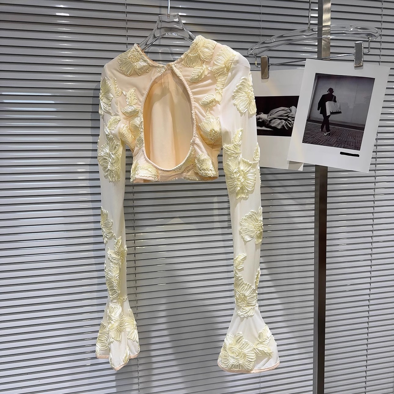 A niche two-piece set of small fragrant style socialite embroidered flower backless T-shirt+skirt set for women
