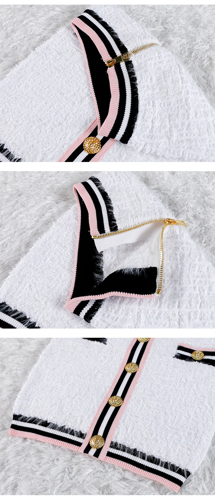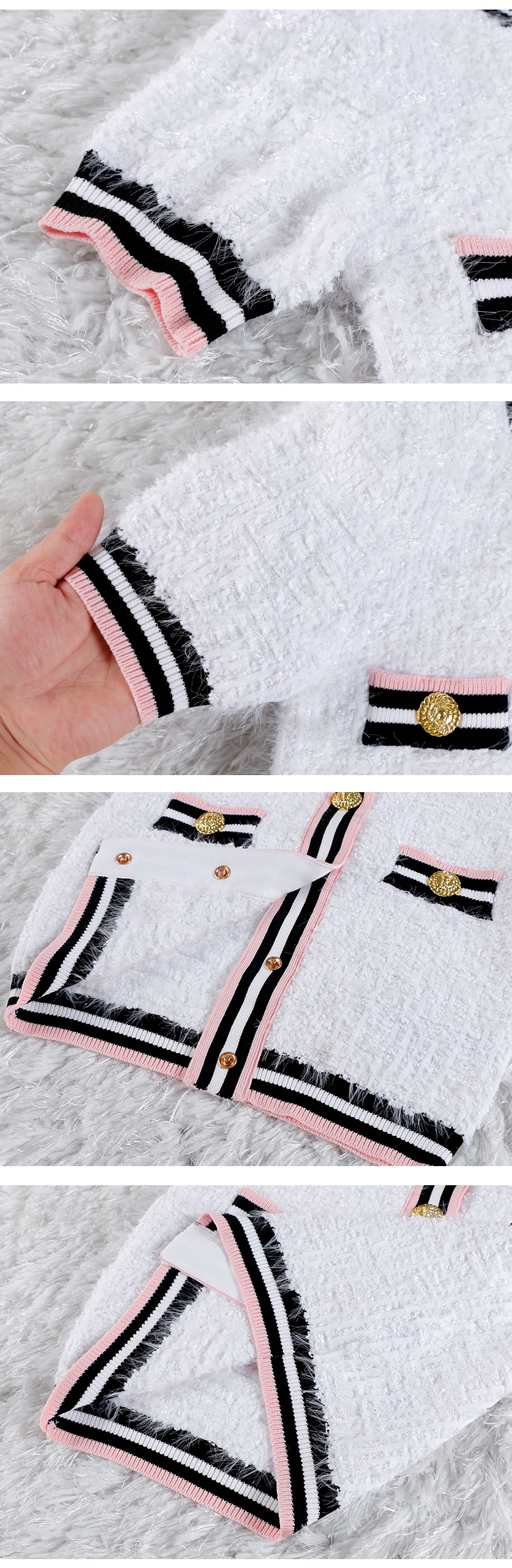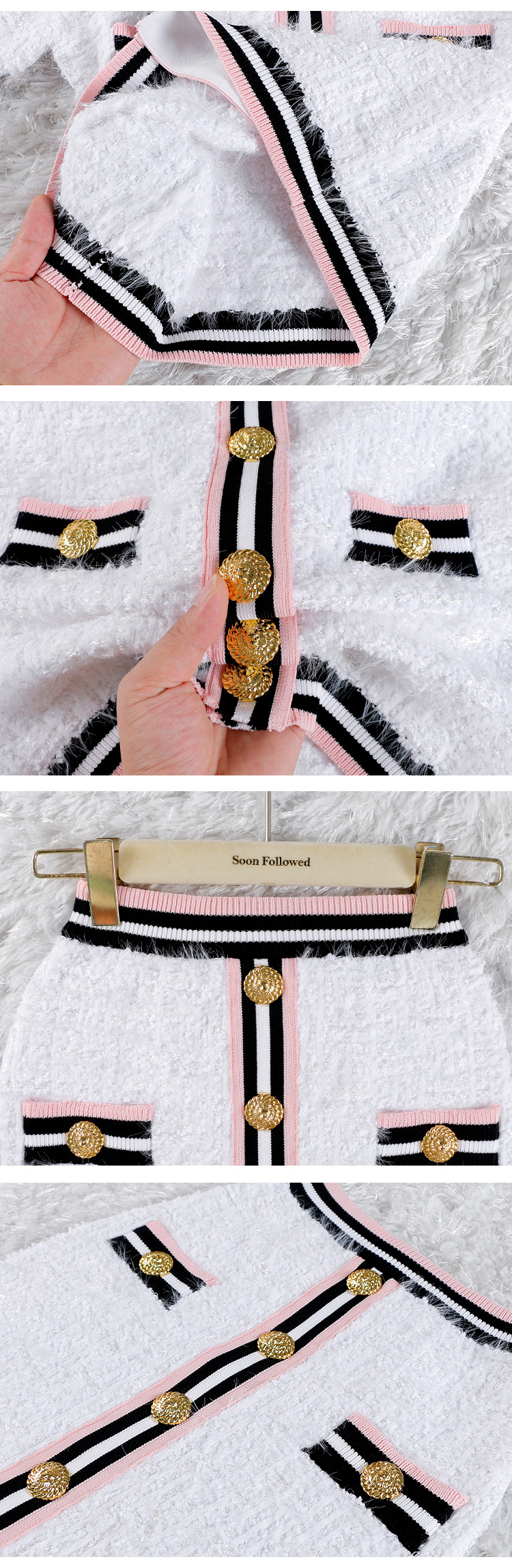 High end fashion shoulder heavy button cardigan short sleeved hip skirt set, light luxury temperament, elegant socialite style