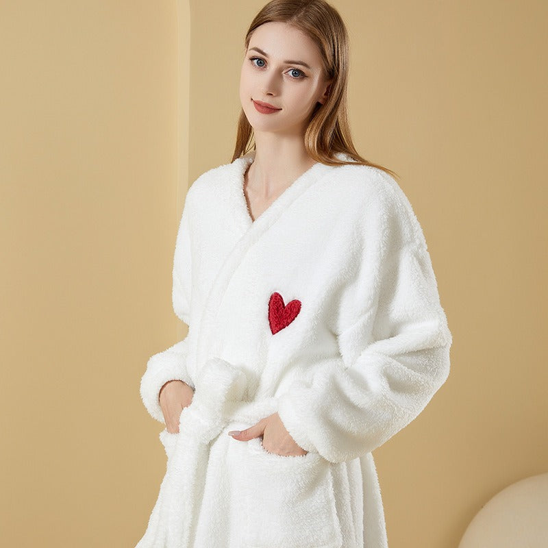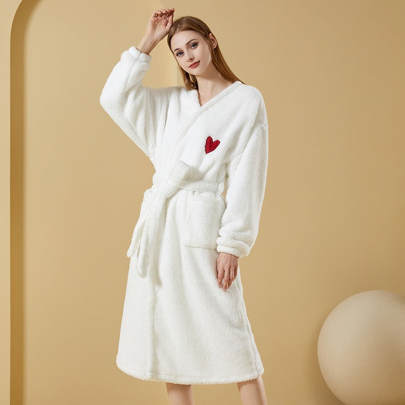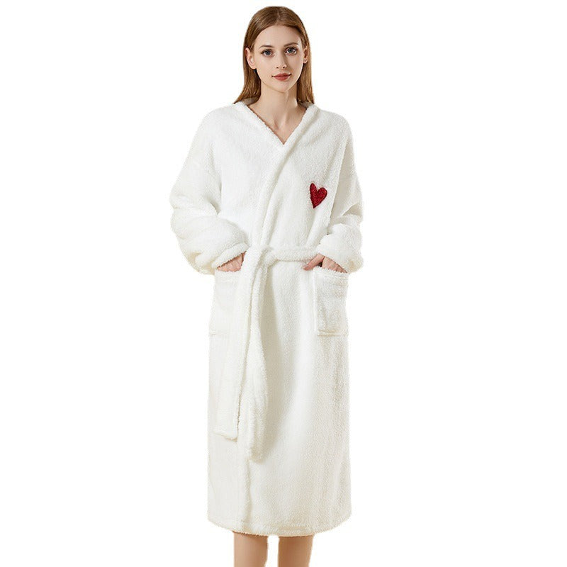 Home Bathrobe Female Winter Thickened Coral Velvet Bathrobe Sweet Love Warm Long Bathrobe