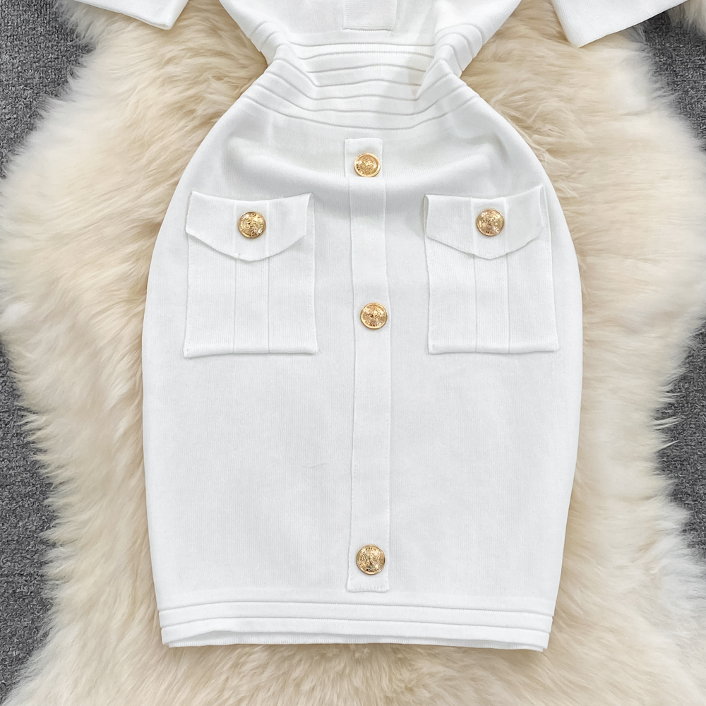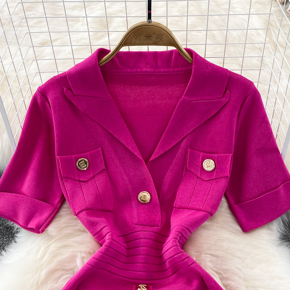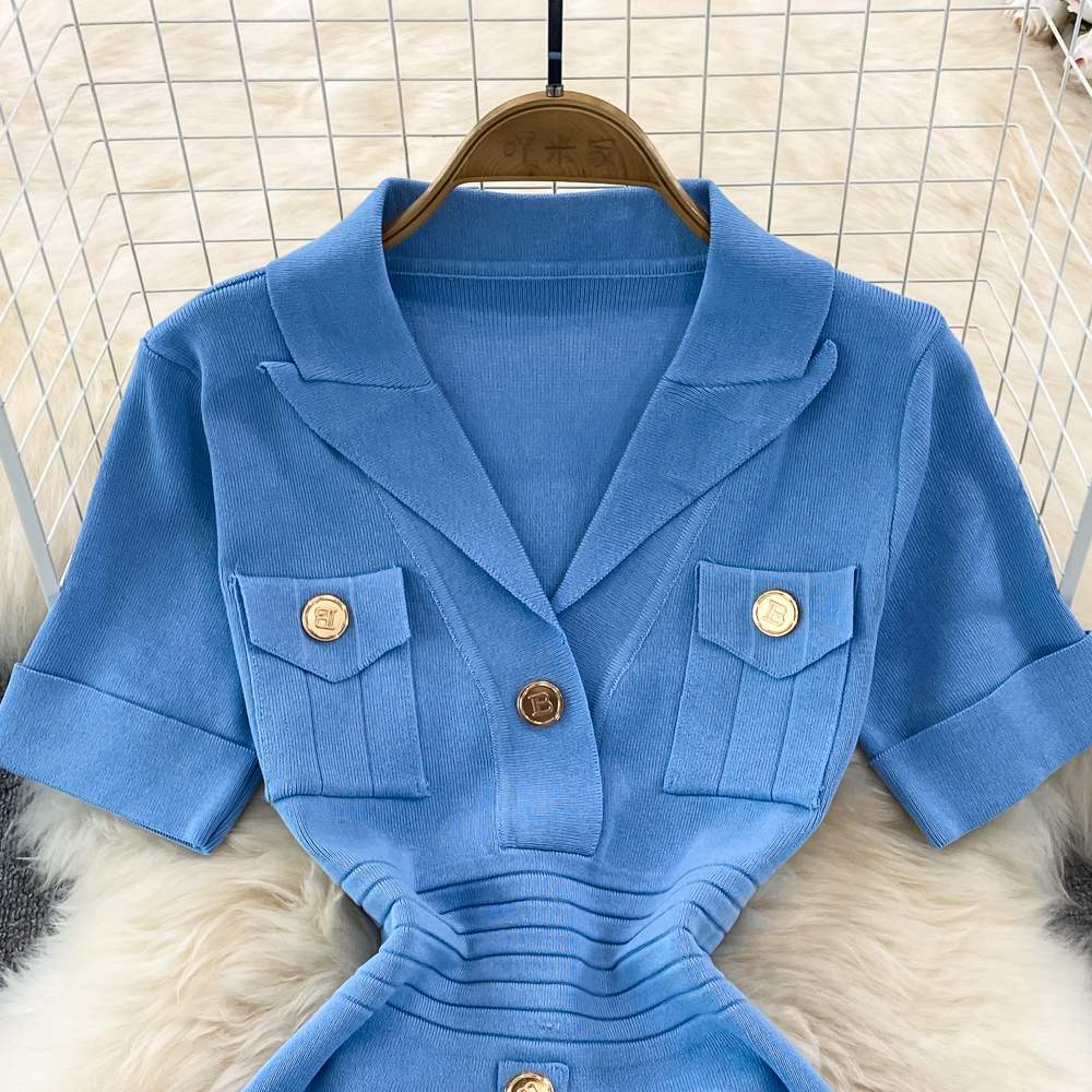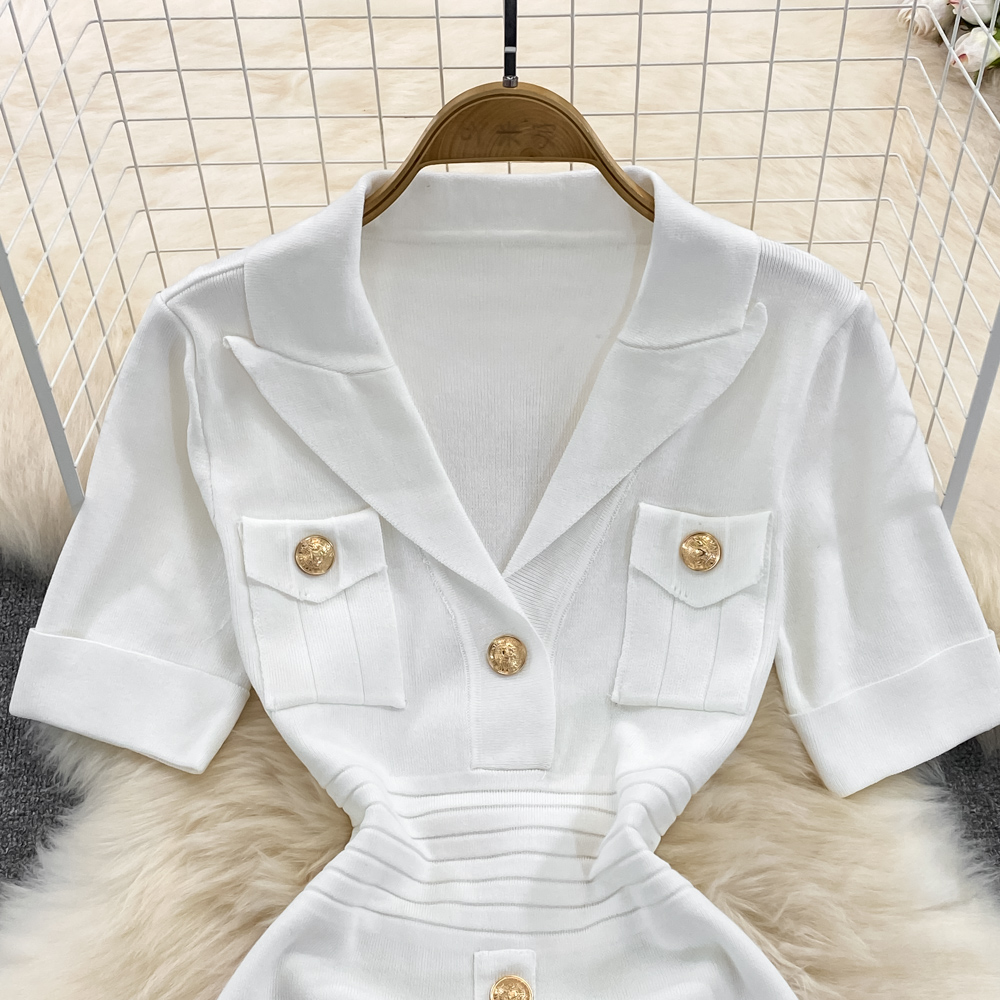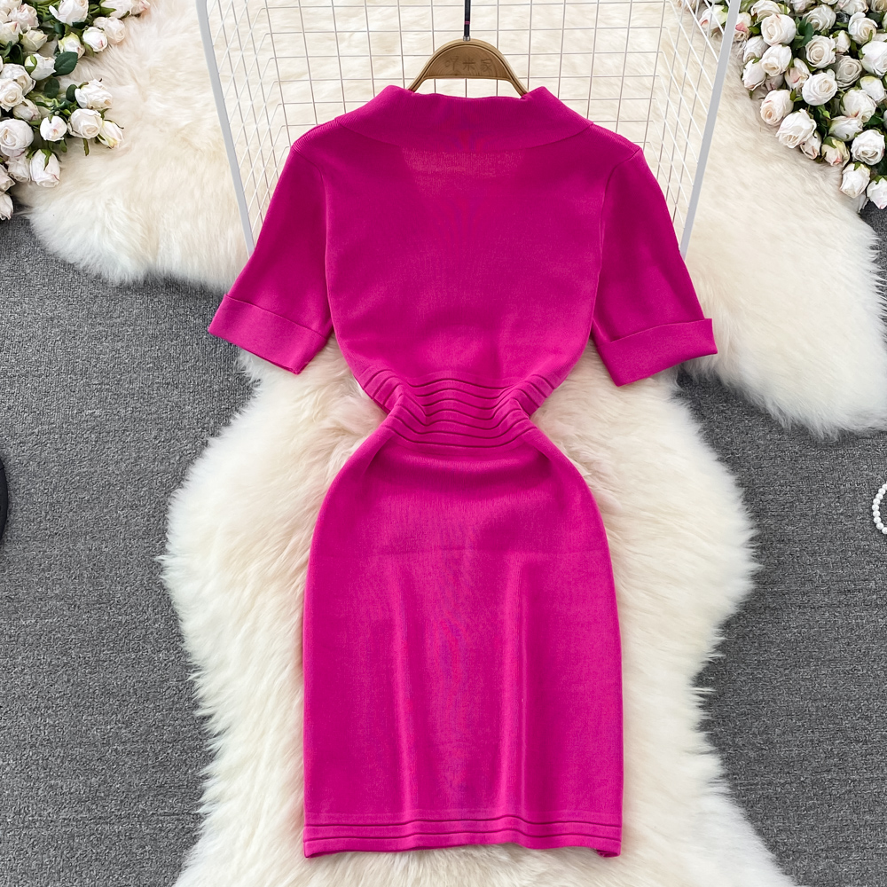 Temperament Package Hip Short Skirt Female Magnanimous Ageing Thin Ice Silk V-Neck Knitted Dress Package Hip Dress