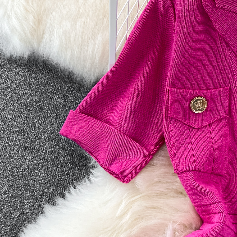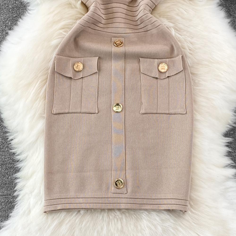 House of Hutson Original- V-Neck Knitted Dress. Sinched waist.