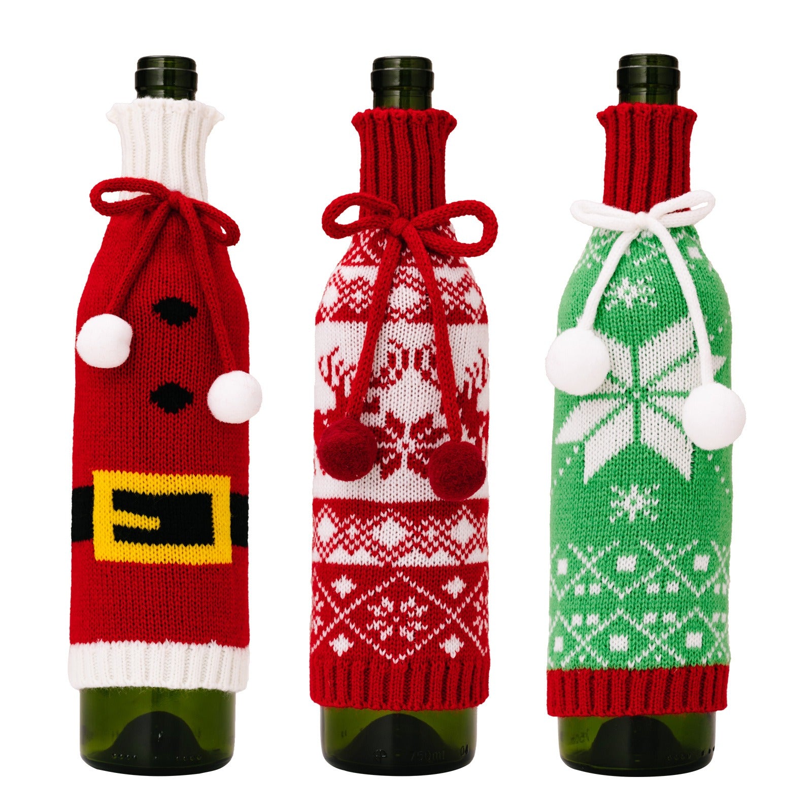 New Christmas Decorative Products Knitted Wine Bottle Set Woolen Champagne Wine Set Christmas Snowflake Wine Set